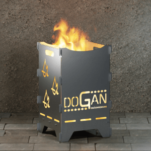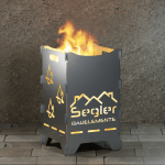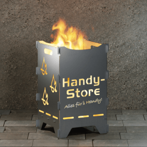 ACHTUNG: Die Feuerstelle wird sehr heiß und kann Hitze übertragen, deshalb auf nicht brennbarem Untergrund aufstellen und auf genügend Abstand zu brennbaren Objekten achten. Es kann zu Funkenflug kommen.